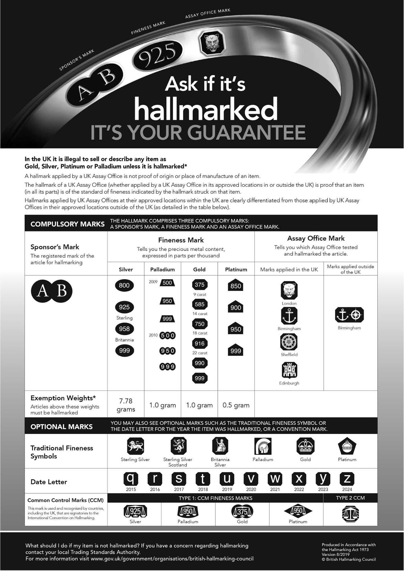Did you know that it is a legal requirement that any silver item being sold that weighs over 7.78g or gold that weighs over 1g must be hallmarked?
